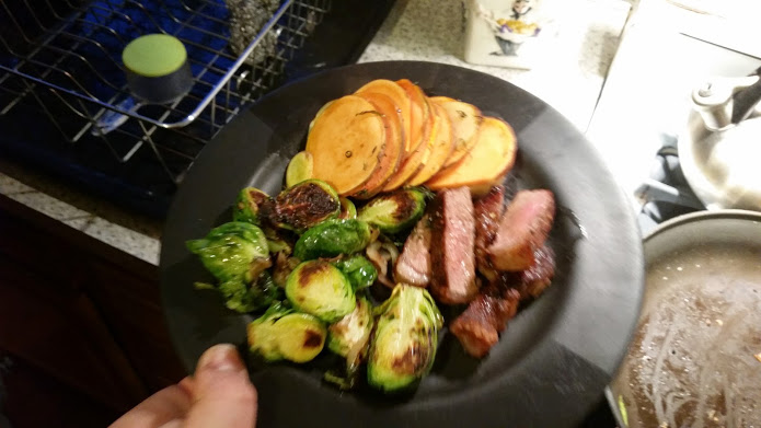 go around, as 1.5 TBS hoisin sauce, 1 packet soy sauce, and 1/2 tsp of chili garlic sauce made just a tiny bit. If I made this again, I would probably add at least an extra tablespoon of hoisin and probably a quarter cup of soy sauce. Maybe I just like things saucy? Plated said this would take 35-45 minutes, it took me 49.
